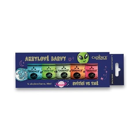 Akrylové barvy na kamínky Cadence Premium sada 5 svítících barev