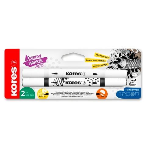 Sada 2 barev akrylových oboustranných popisovačů Kores Kreative Marker. Popisovače jsou ideální pro kreslení, psaní i práci s jemnými detaily.