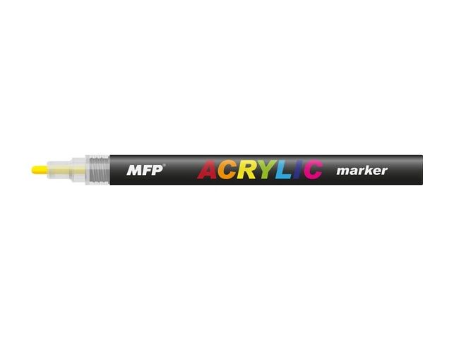 Akrylový žlutý popisovač. Tyto akrylové popisovače se vyznačují svou barevnou sytostí i stálostí, a velmi dobrými krycími schopnostmi. Jsou vhodné na všechny nemastné a hladké povrchy, jako jsou plátna, papír, dřevo, kámen atd. Návod k použití: Před použitím protřepte Stisknete hrot dolů, dokud nevyteče barva Nemačkejte hrot během psaní Skladujte hrotem nahoru Hrot: 4 mm Délka: 150 mm Průměr: 15 mm Uvedená cena je za 1 ks