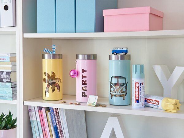 TIP: Na blogu Školní svět je článek s foto návodem Jak pracovat s akrylovými spreji Edding., TIP: AKRYLOVÉ SPREJE SE SKVĚLE DOPLŇUJÍ S AKRYLOVÝMI POPISOVAČI EDDING.