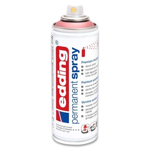 Permanentní spreje edding 5200 obsahují vysoce kvalitní akrylovou barvu s mimořádnou kryvostí, která extrémně rychle zasychá, nestéká a je trvanlivá i v exteriéru. Spreje jsou vhodné pro všechny domácí řemeslné práce – na dřevo, kámen, kov, sklo, košíkářské výrobky, keramiku i plast. Jsou určené i pro kreativní využití na malířské plátno. Objem: 200 ml