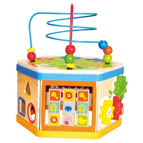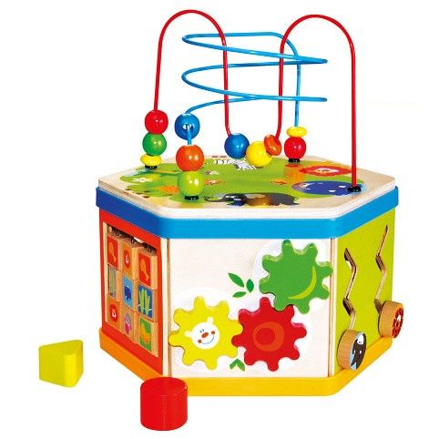 Multifunkční motorická kostka je kvalitní dřevěnou hračkou pro malé šikulky. Díky rozmanitým aktivitám, které mohou děti na každé stěně kostky plnit, procvičují jemnou motoriku ruky, logiku a soustředěnost. Rozměr: 30x35x30