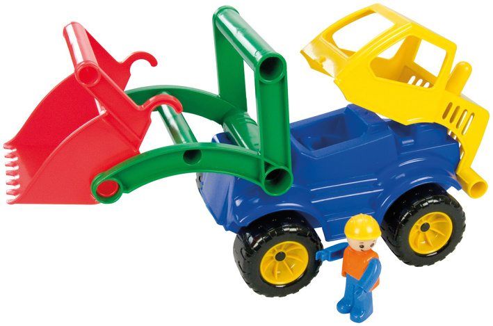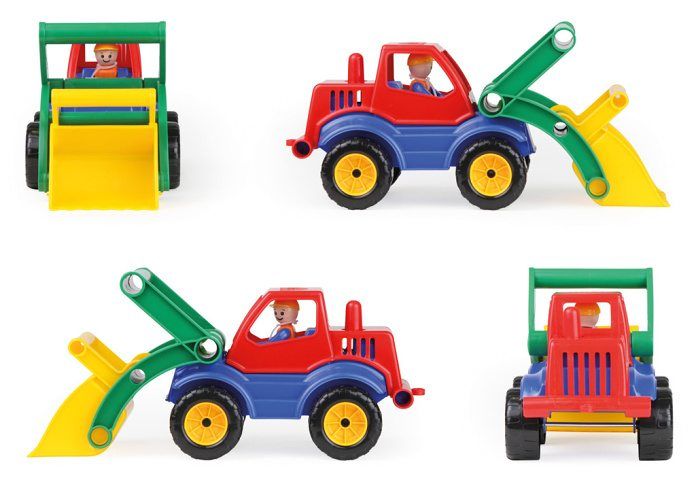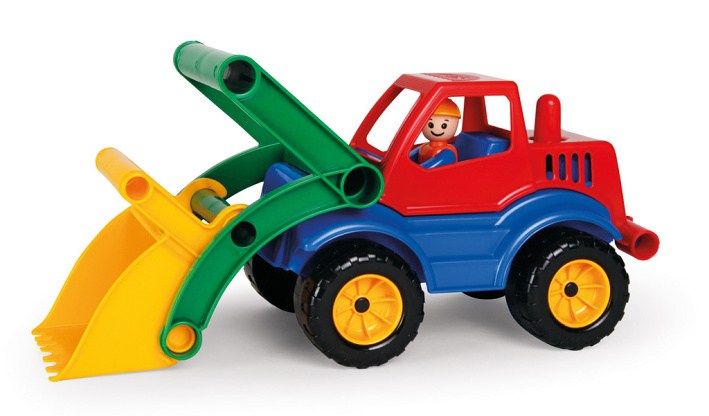 Aktivní nakladač z kvalitního plastu a velmi pevnou stavbou. Plně mechanicky funkční. Obsahuje odklopitelnou kabinu s aktivním panáčkem.