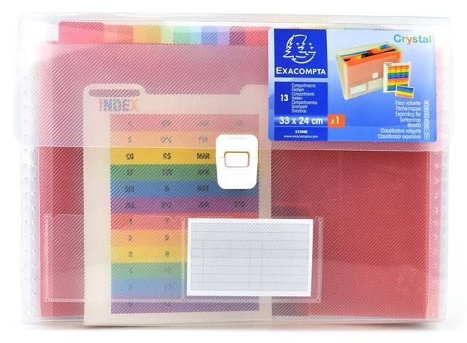 Aktovka na dokumenty, 13 kapes, 33 x 25 cm, transparentní