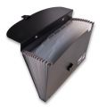 Aktovka na dokumenty s atraktivním designem pro pohodlný přenos a organizaci dokumentů velikosti A4. Je vyrobená z pevného transparentního polypropylenu, tloušťka 700 mikronů. Praktické uzavírání na klip a pevné madlo. Obsahuje 13 dělících přihrádek se samolepicími štítky.