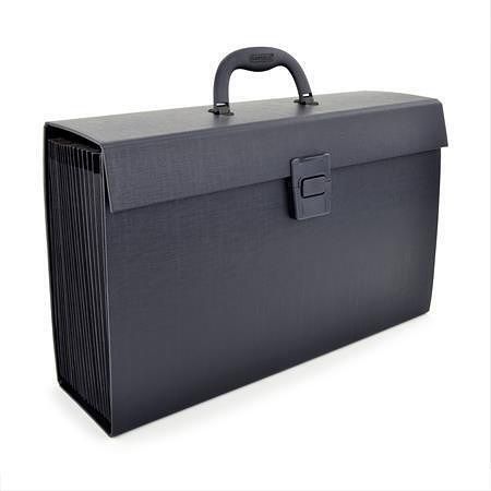 Aktovka na dokumenty, s držadlem, černá, 19 přihrádek, A4, PP, RAPESCO