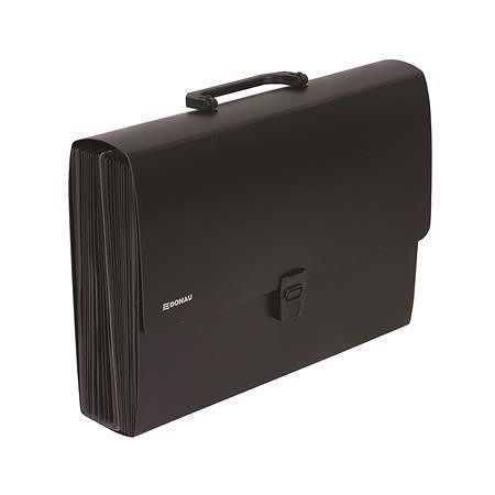 Aktovka na dokumenty, s držadlem, černá, 26 přihrádek, A4, PP, DONAU
