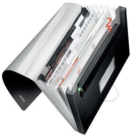Aktovka s přihrádkami "Style", saténově černá, 6 částí, PP, A4, LEITZ