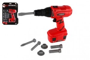 Aku Vrtačka nářadí plast 18x17cm s doplňky na baterie se zvukem na kartě 23x32cm