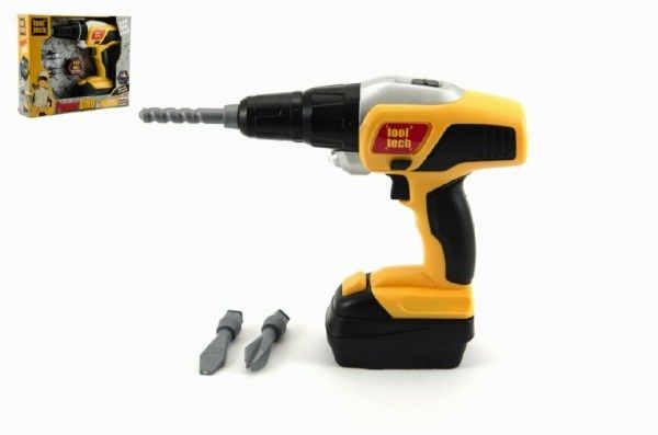 Aku Vrtačka nářadí plast 26cm na baterie se zvukem se světlem v krabici