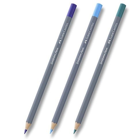 Vysoce kvalitní profesionální dřevěné akvarelové pastelky Faber-Castell Goldfaber Aqua v modrých odstínech mají vysoce pigmentovou tuhu a šestihranný tvar. Tloušťka tuhy 3,3 mm.