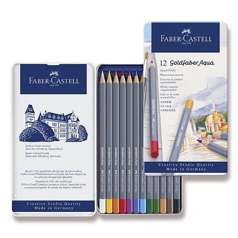 Akvarelové pastelky Faber-Castell Goldfaber Aqua plechová krabička, 12 barev