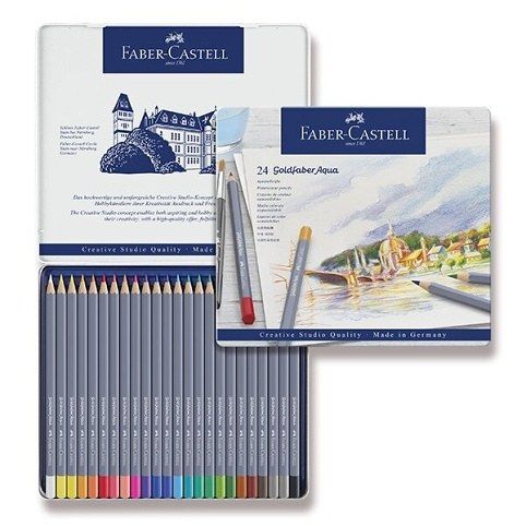 Akvarelové pastelky Faber-Castell Goldfaber Aqua plechová krabička, 24 barev