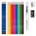 Sada obsahuje: 12 různých barev akvarelových tužek, 3 akvarelové grafitové tužky různé tvrdosti (4B, 6B, 8B), gumu, ořezávátko, vodou naplnitelný štětec