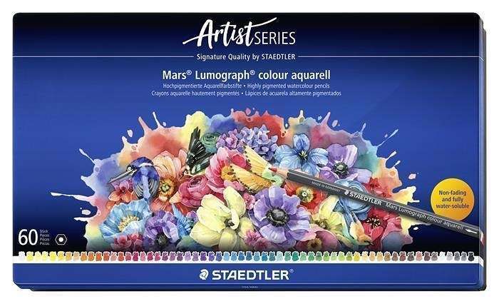 Akvarelové pastelky "Mars Lumograph 104", 60 barev, šestihranné, kovová krabička, STAEDTLE
