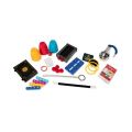 Sada 10 skládacích kouzelnických hraček a návodu, jak na ně. Pro malé kouzelníky od 6 let, kteří se díky sadě naučí kouzelnické triky. Sada obsahuje: 10 kouzel - Úžasné pouzdro na karty, Kelímky a kuličky, Rozřezání a obnovení tyčky, Vznášející se váza, Kouzelná tiskárna peněz, Mizející kulička, Superpočítač, Kroužek na řetízku, Balíček kouzelnických karet, Polykač mincí a návod.