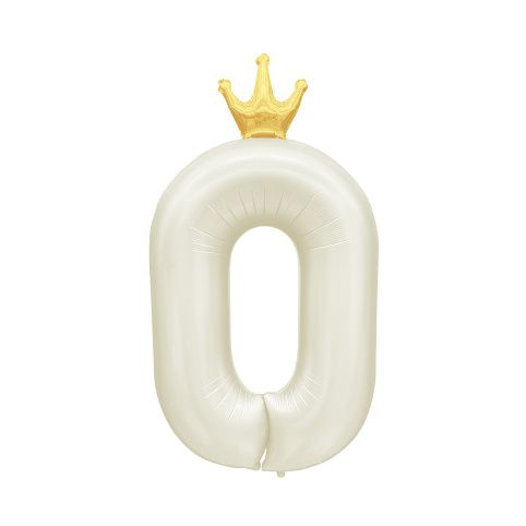 Fóliový balónek ve tvaru číslice 0 se zlatou korunkou je ideální dekorací na oslavu narozenin či jiného významného jubilea. Tento balónek má jemnou světle krémovou barvu, která bude hezky ladit s dalšími párty dekoracemi a doplňky ve stejném odstínu. Velikost/rozměr: 82 cm Materiál: pevná fólie Balení obsahuje: 1 ks balónku s korunkou a papírové brčko pro snadné nafouknutí Balónek je možné nafukovat vzduchem i heliem.