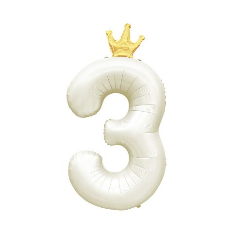 Fóliový balónek ve tvaru číslice 3 se zlatou korunkou je ideální dekorací na oslavu narozenin či jiného významného jubilea. Tento balónek má jemnou světle krémovou barvu, která bude hezky ladit s dalšími párty dekoracemi a doplňky ve stejném odstínu. Velikost/rozměr: 82 cm Materiál: pevná fólie Balení obsahuje: 1 ks balónku s korunkou a papírové brčko pro snadné nafouknutí Balónek je možné nafukovat vzduchem i heliem.