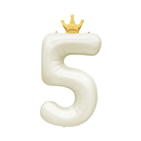 Fóliový balónek ve tvaru číslice 5 se zlatou korunkou je ideální dekorací na oslavu narozenin či jiného významného jubilea. Tento balónek má jemnou světle krémovou barvu, která bude hezky ladit s dalšími párty dekoracemi a doplňky ve stejném odstínu. Velikost/rozměr: 82 cm Materiál: pevná fólie Balení obsahuje: 1 ks balónku s korunkou a papírové brčko pro snadné nafouknutí Balónek je možné nafukovat vzduchem i heliem.