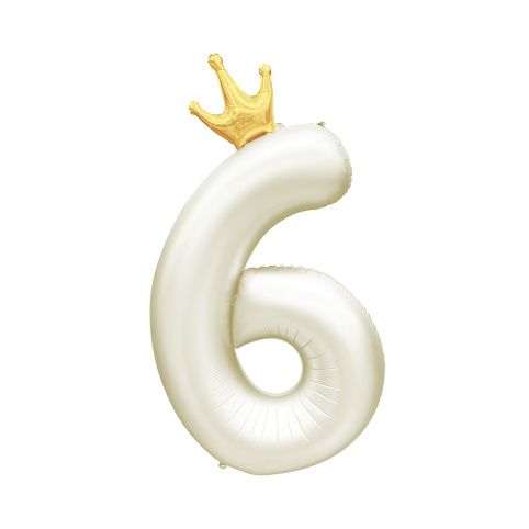 Fóliový balónek ve tvaru číslice 6 se zlatou korunkou je ideální dekorací na oslavu narozenin či jiného významného jubilea. Tento balónek má jemnou světle krémovou barvu, která bude hezky ladit s dalšími párty dekoracemi a doplňky ve stejném odstínu. Velikost/rozměr: 82 cm Materiál: pevná fólie Balení obsahuje: 1 ks balónku s korunkou a papírové brčko pro snadné nafouknutí Balónek je možné nafukovat vzduchem i heliem.