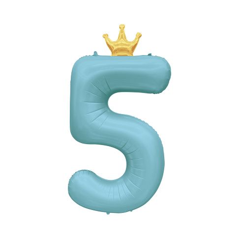 Fóliový balónek ve tvaru číslice 5 se zlatou korunkou je ideální dekorací na oslavu narozenin či jiného významného jubilea. Tento balónek má jemnou světle modrou barvu, která bude hezky ladit s dalšími párty dekoracemi a doplňky ve stejném odstínu. Velikost/rozměr: 82 cm Materiál: pevná fólie Balení obsahuje: 1 ks balónku s korunkou a papírové brčko pro snadné nafouknutí Balónek je možné nafukovat vzduchem i heliem.