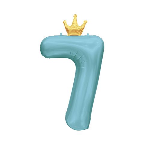 Fóliový balónek ve tvaru číslice 7 se zlatou korunkou je ideální dekorací na oslavu narozenin či jiného významného jubilea. Tento balónek má jemnou světle modrou barvu, která bude hezky ladit s dalšími párty dekoracemi a doplňky ve stejném odstínu. Velikost/rozměr: 82 cm Materiál: pevná fólie Balení obsahuje: 1 ks balónku s korunkou a papírové brčko pro snadné nafouknutí Balónek je možné nafukovat vzduchem i heliem.