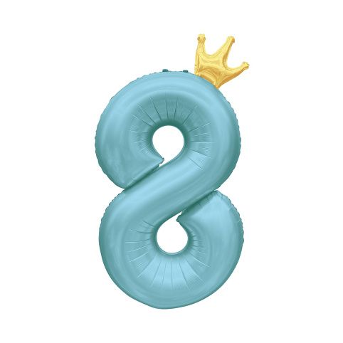 Fóliový balónek ve tvaru číslice 8 se zlatou korunkou je ideální dekorací na oslavu narozenin či jiného významného jubilea. Tento balónek má jemnou světle modrou barvu, která bude hezky ladit s dalšími párty dekoracemi a doplňky ve stejném odstínu. Velikost/rozměr: 82 cm Materiál: pevná fólie Balení obsahuje: 1 ks balónku s korunkou a papírové brčko pro snadné nafouknutí Balónek je možné nafukovat vzduchem i heliem.
