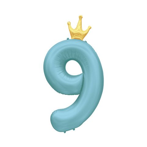 Fóliový balónek ve tvaru číslice 9 se zlatou korunkou je ideální dekorací na oslavu narozenin či jiného významného jubilea. Tento balónek má jemnou světle modrou barvu, která bude hezky ladit s dalšími párty dekoracemi a doplňky ve stejném odstínu. Velikost/rozměr: 82 cm Materiál: pevná fólie Balení obsahuje: 1 ks balónku s korunkou a papírové brčko pro snadné nafouknutí Balónek je možné nafukovat vzduchem i heliem.