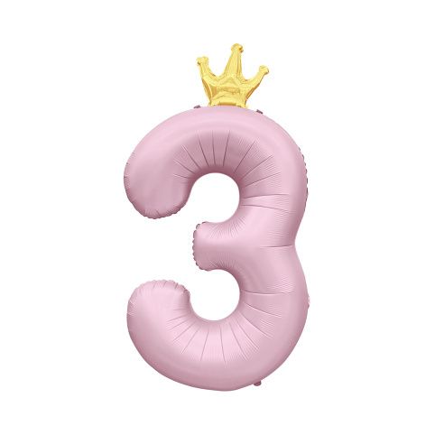 Fóliový balónek ve tvaru číslice 3 se zlatou korunkou je ideální dekorací na oslavu narozenin či jiného významného jubilea. Tento balónek má jemnou světle růžovou barvu, která bude hezky ladit s dalšími párty dekoracemi a doplňky ve stejném odstínu. Velikost/rozměr: 82 cm Materiál: pevná fólie Balení obsahuje: 1 ks balónku s korunkou a papírové brčko pro snadné nafouknutí Balónek je možné nafukovat vzduchem i heliem.