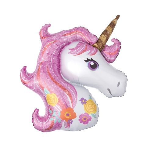 Fóliový balónek ve tvaru hlavy jednorožce s glitrovým efektem je ideální jako veselá dekorace na tematickou oslavu nebo párty. Rozměry: 83 × 73 cm Materiál: pevná fólie Balení obsahuje: 1 ks balónku Balónek je možné nafukovat vzduchem i heliem.