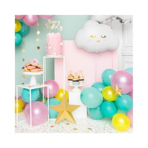 Roztomilý fóliový balónek ve tvaru mráčku je ideální na veselou venkovní párty nebo tematickou oslavu. Velikost/rozměr: 20" - 51 cm Materiál: pevná fólie Balení obsahuje: 1 ks fóliového balónku Balónky je možné nafukovat vzduchem i heliem.