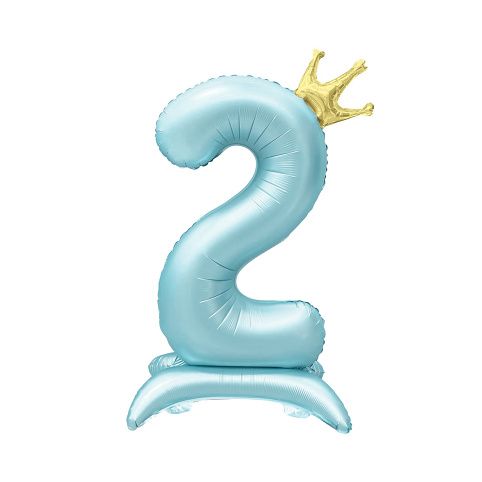 Stojící fóliový balónek ve tvaru světle modré číslice 2 s korunkou je ideální jako efektní výzdoba narozeninové párty nebo oslavy významného jubilea. Jednotlivé číslicové balónky můžete kombinovat pro vytvoření potřebného čísla. Výška: 82 cm Materiál: fólie se saténovou úpravou Balení obsahuje: 1 ks balónku a papírové brčko pro snadné nafouknutí Balónky je možné nafukovat pouze vzduchem.