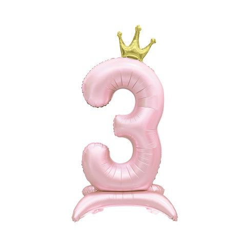 Stojící fóliový balónek ve tvaru světle růžové číslice 3 s korunkou je ideální jako efektní výzdoba narozeninové párty nebo oslavy významného jubilea. Jednotlivé číslicové balónky můžete kombinovat pro vytvoření potřebného čísla. Výška: 82 cm Materiál: fólie se saténovou úpravou Balení obsahuje: 1 ks balónku a papírové brčko pro snadné nafouknutí Balónky je možné nafukovat pouze vzduchem.