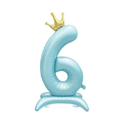 Stojící fóliový balónek ve tvaru světle modré číslice 6 s korunkou je ideální jako efektní výzdoba narozeninové párty nebo oslavy významného jubilea. Jednotlivé číslicové balónky můžete kombinovat pro vytvoření potřebného čísla. Výška: 82 cm Materiál: fólie se saténovou úpravou Balení obsahuje: 1 ks balónku a papírové brčko pro snadné nafouknutí Balónky je možné nafukovat pouze vzduchem.