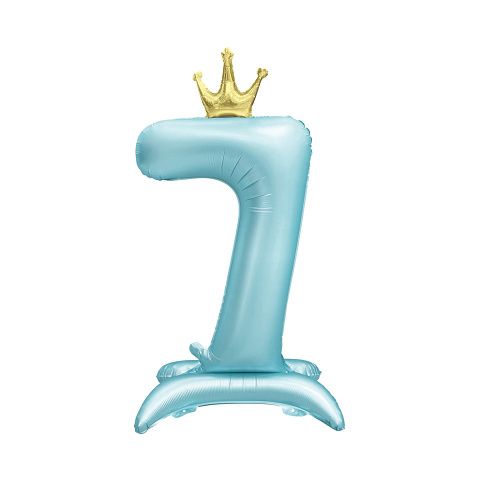 Stojící fóliový balónek ve tvaru světle modré číslice 7 s korunkou je ideální jako efektní výzdoba narozeninové párty nebo oslavy významného jubilea. Jednotlivé číslicové balónky můžete kombinovat pro vytvoření potřebného čísla. Výška: 82 cm Materiál: fólie se saténovou úpravou Balení obsahuje: 1 ks balónku a papírové brčko pro snadné nafouknutí Balónky je možné nafukovat pouze vzduchem.