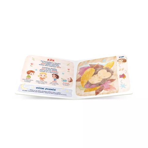 Dětská knížka básniček, ke kterým se navíc pojí jednoduchá pohybová gesta, jež děti zklidní a připraví na usínání. Pro děti od 2-5 let.