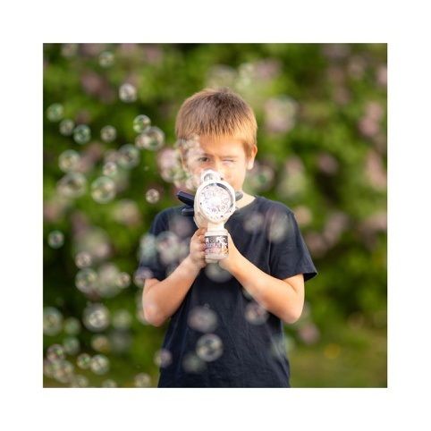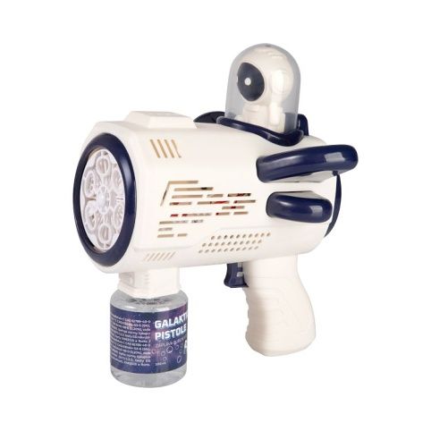 Záplava bublin s Galaktickou pistolí zabaví děti již od 3 let! Galaktická pistole svítí, má doplňovací zásobník a je šetrná k životnímu prostředí. Elektrická pistole funguje na tužkové baterie (4×AA). Baterie nejsou součástí balení. Sada Bublifuk - Galaktická pistole obsahuje: bublinovou pistoli, 2 velká křídla, 2 malá křídla, kosmonauta, bublinovou směs.