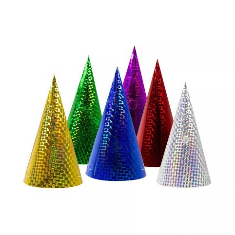 Set 6 kusů papírových čepiček s holografickým efektem. Rozměr: 16 cm × 10 cm Velikost: univerzální (určeno pro dospělé i děti) Balení obsahuje: 6 ks čepiček s gumičkou