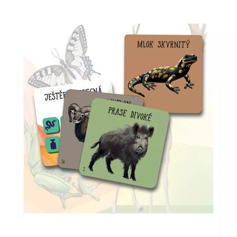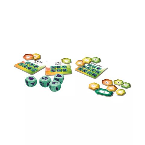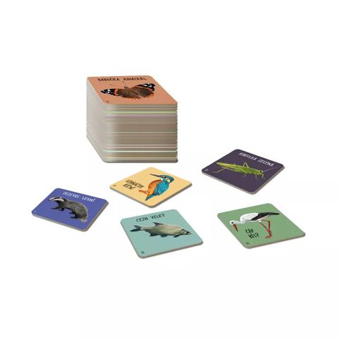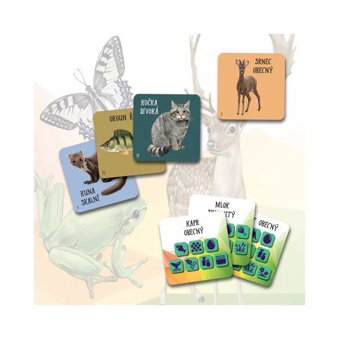 Podaří se vám propojit co nejvíce symbolů s některým zvířetem z vyložené nabídky karet? Hra obsahuje: 4 barevné kostky s ikonami, 60 kartiček s českými zvířaty, 54 výherních žetonů a pravidla.