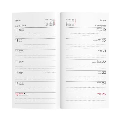 Plánujte do detailů s kapesními Albi diáři na rok 2026. Diáře mají přehledné čtrnáctidenní kalendárium a vejdou se do každé kabelky. Rozměry: 8,2 cm × 15,5 cm × 0,5 cm