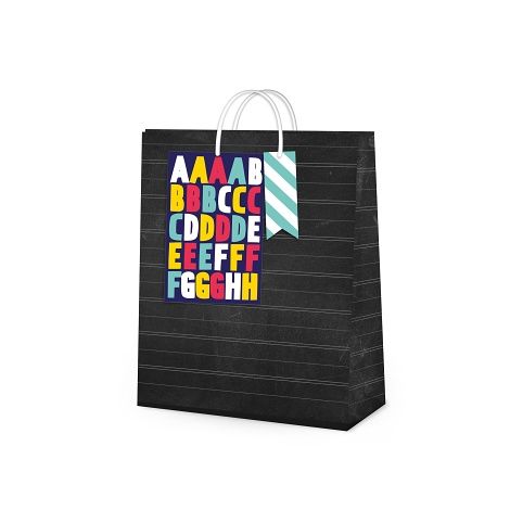 Papírová dárková taška s písmenky k nalepení nabízí vtipný způsob zabalení dárku pro školáky či učitele. Rozměry: 17,8 × 9,8 × 22,9 cm