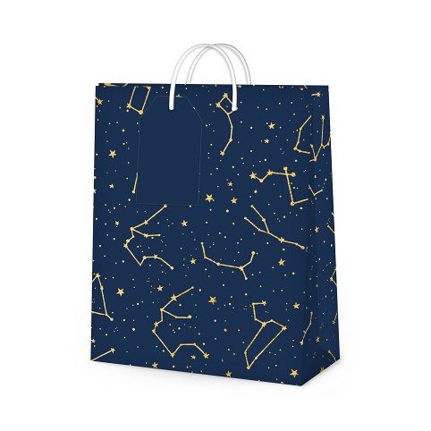 Luxusní papírová dárková taška se zlatou ražbou a motivem souhvězdí je vhodná na zabalení dárku pro muže i ženy. Rozměry: 26 × 12,7 × 32,4 cm