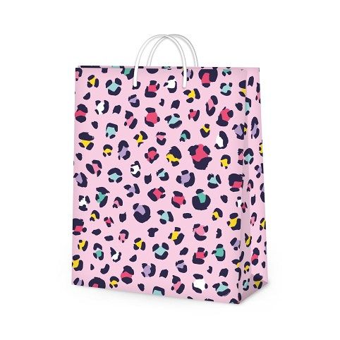 Papírová dárková taška s růžovým leopardím vzorem pro všechny dámy a mladé slečny. Rozměry: 26 × 12,7 × 32,4 cm