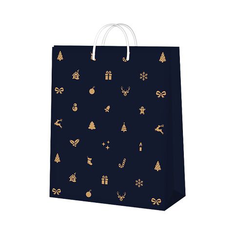 Elegantní dárková taška s ražbou malých vánočních motivů. Rozměry: 26 × 12,7 × 32,4 cm