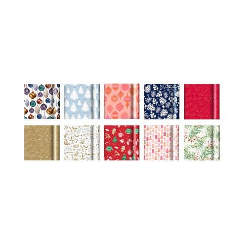 Mix vánočních balicích papírů. 10 různých designů po 6 kusech, celkem tedy 60 rolí. Šířka: 70 cm Délka: 2 m