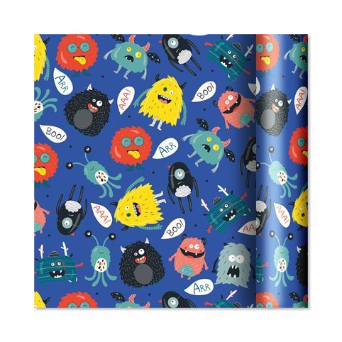 ALBI Dárkový papír - role 2 m × 70 cm - Barevné příšerky na modré