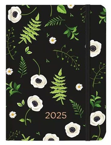ALBI Diář B6 denní 2025 - Černý s květinami