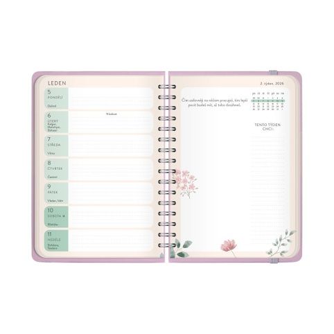 Motivační diáře na rok 2026 mají tvrdé desky, barevné týdenní kalendárium, praktické zavírání na gumičku a místo pro zápis toho, co v daném týdnu chcete zařídit či dokázat. Velikost: A6 Rozměry: 10 × 15 × 1,2 cm