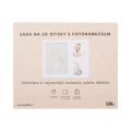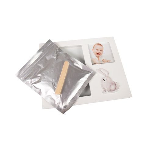 Originální fotorámeček na fotografii a 3D otisk ručičky nebo nožičky. Balení obsahuje: bílý fotorámeček, sadu na otisky: samotvrdnoucí hmotu v bílé barvě (bezpečná pro dětskou pokožku), váleček, oboustrannou lepicí pásku a návod. Velikost rámečku: 21,6 × 26,5 × 2,2 cm Vhodný na fotografii o rozměru: 9 × 9 cm