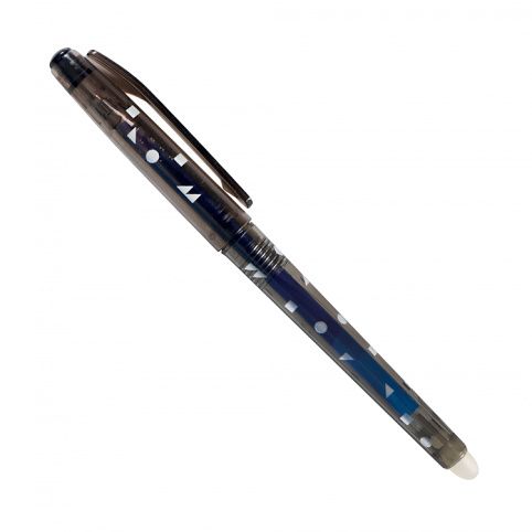 Gumovací pero s modrou vyměnitelnou náplní má pogumovaný úchyt pro pohodlné psaní i dětskou rukou.